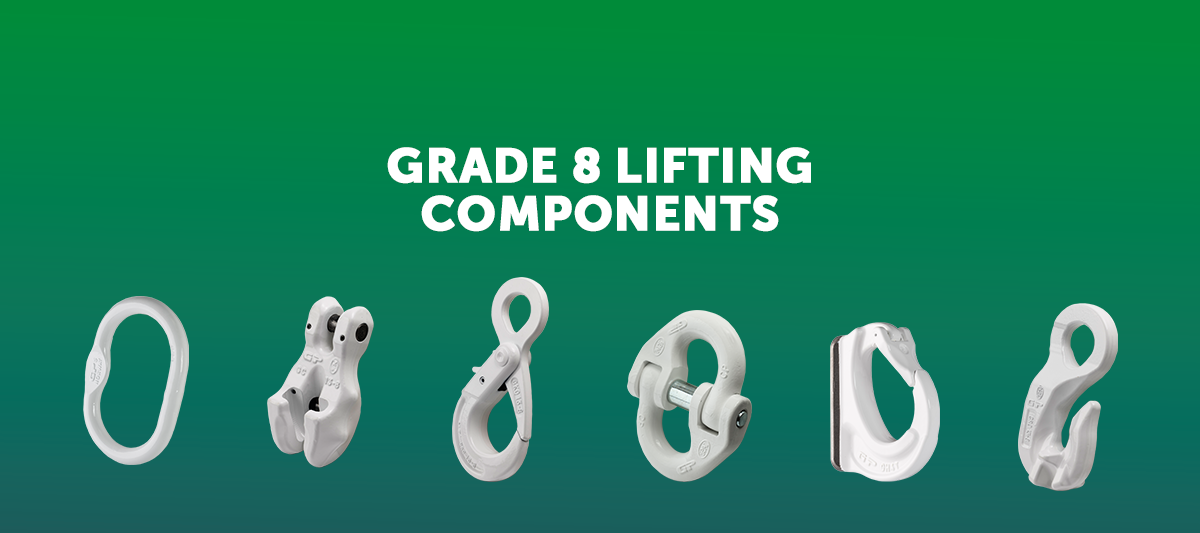 Grade 8 lifting components are essential in various industries, including construction, mining, shipbuilding and manufacturing. Their robustness and high load capacity make them indispensable for handling heavy machinery, equipment and materials safely and efficiently. The components are designed to cope with heavy loads and ensure the safety of lifting and handling of objects. Green Pin® grade 8 lifting sling fittings enable the assembly of a complete sling from the top master link to the hooks. View the Green Pin® assortment of lifting sling fittings for grade 8 chain below.